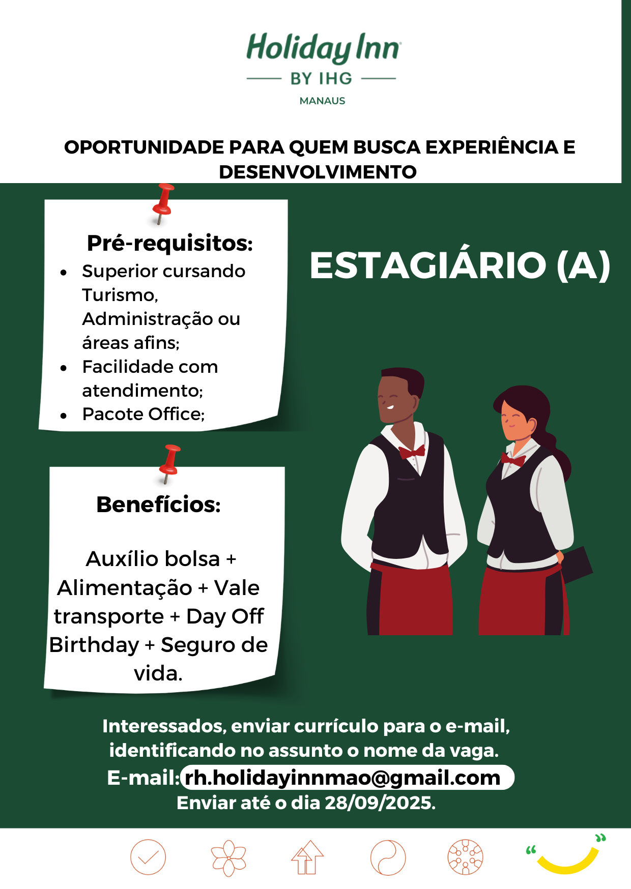 A oportunidade de estágio no Holiday Inn Manaus é um importante passo para estudantes de áreas como turismo, administração e outros campos afins. Este estágio não apenas proporciona uma experiência prática valiosa, mas também serve como um trampolim para o desenvolvimento profissional. Em um mercado de trabalho cada vez mais competitivo, adquirir habilidades práticas pode ser um diferencial significativo para aqueles que buscam construir uma carreira sólida.